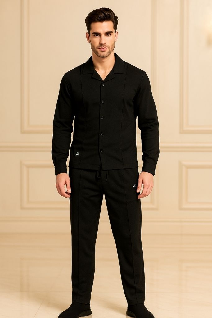 Waffle Black Safari Suit for Men – Premium Winter Wear in Pakistan